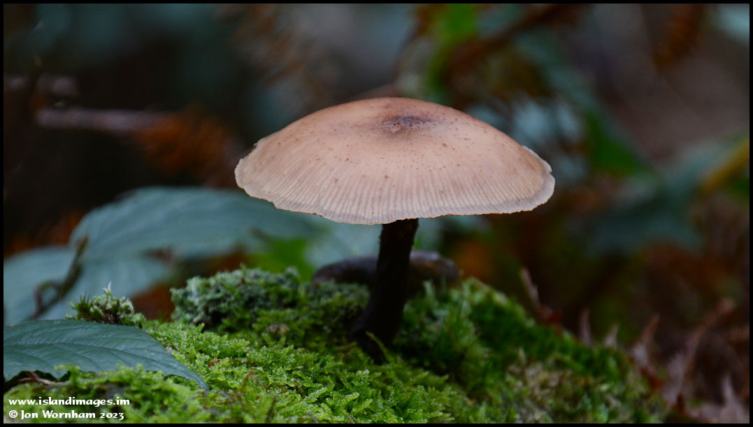 A delicate fungus growing through moss,