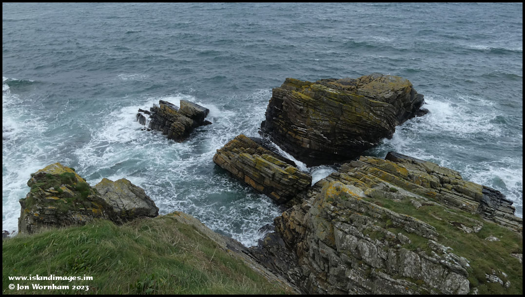 The sea swirling around rocks just to the north of Niarbyl.