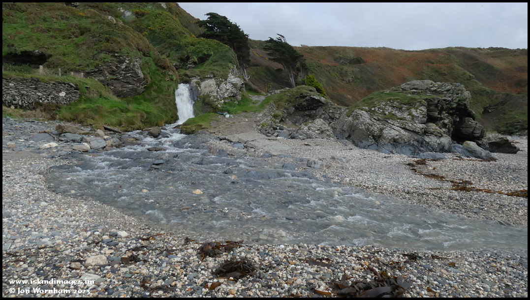 I've reached the waterfall, there's a lot of water flowing across the ebach and I'm only wearing walking shoes, it doesn't look like I'll be able to cross over.