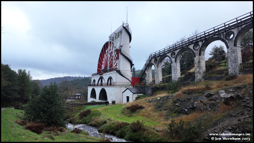 The Laxey Wheel and part of the viaduct that carries the drive rod around 656 feet to the pumps. The rain had started to get heavier again so time for a quick retreat to the car!