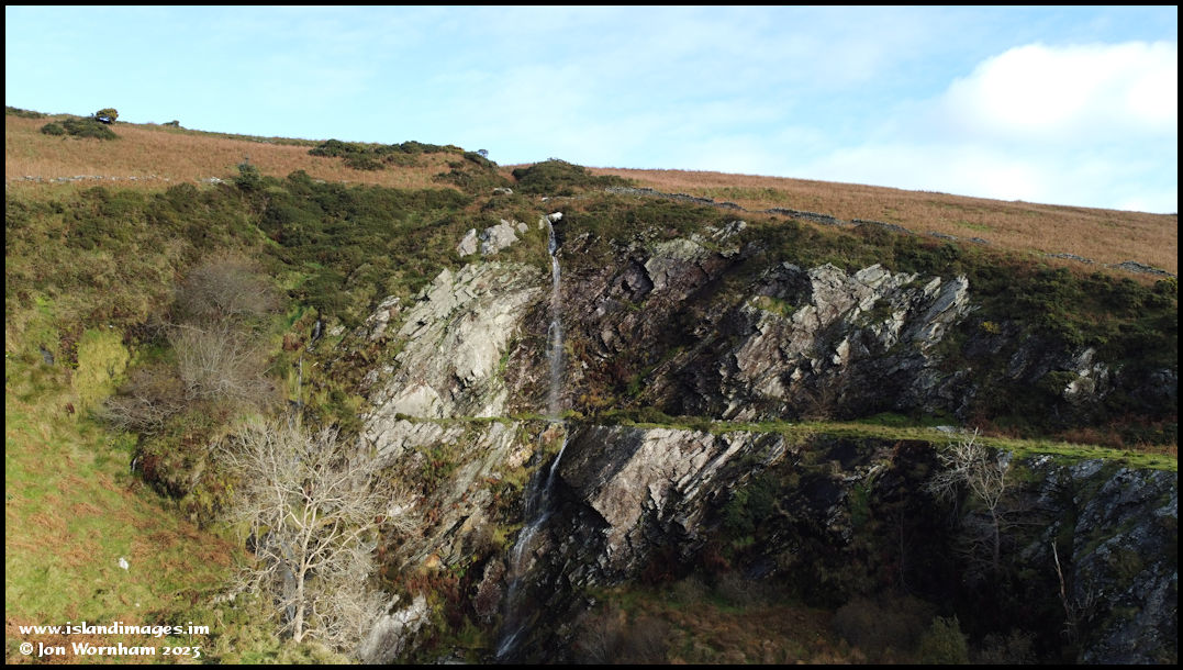 Using the drone to move a camera out over the quarry for a better angle on and get closer to the waterfall