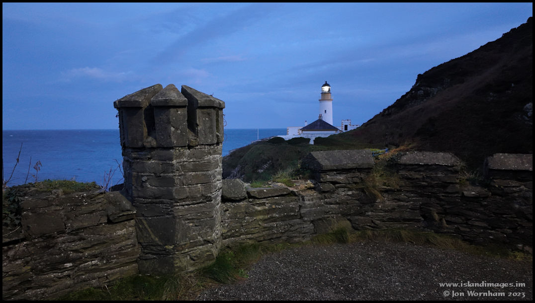 An old ornamental pillar above Port Skillion with the lighthouse behind.