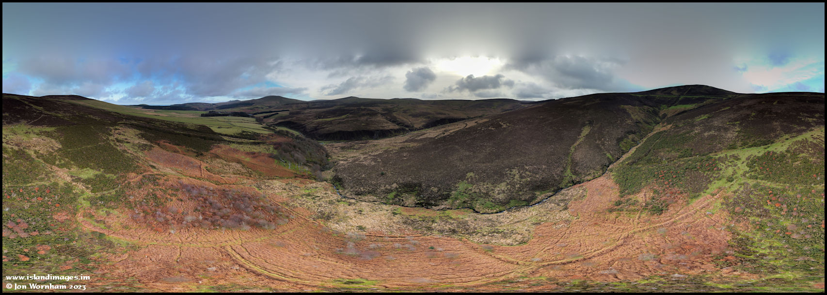 360 degree Panorama by Montpelier Woodland. Remains of old field hedges can be seen on the hillsides.