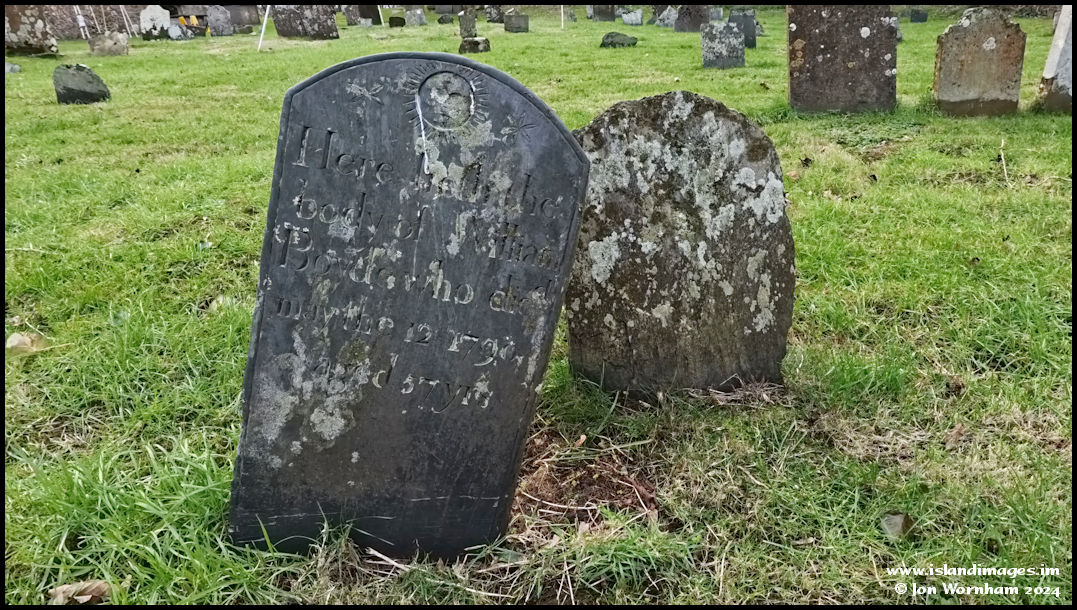 Quite an elaborate carved slate gravestone, dated 1790.