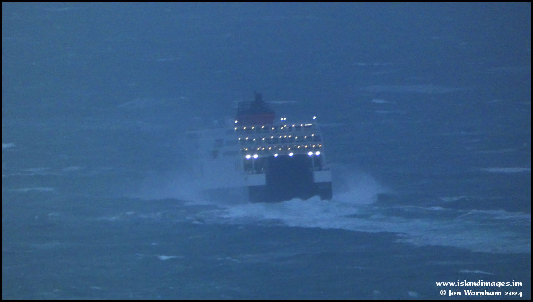 Despite all sailings having been cancelled due to Storm Isha, the Manxman headed out to spend the whole day at sea! I think this was due to harbour works to ensure safe mooring not yet being completed.