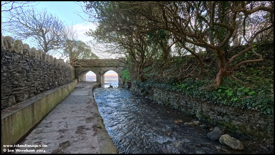 Approaching the Ballure Arches, where the stream flows out to sea across the beach.