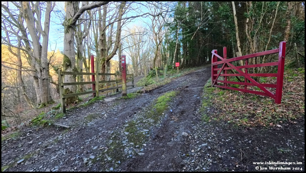 Arriving at a split in the tracks, the one to the right is up to Eairy Mooar farm and signed as private, but the one to the left follows the southern edge of Glen Helen before dropping back down to the Rhenass Falls.