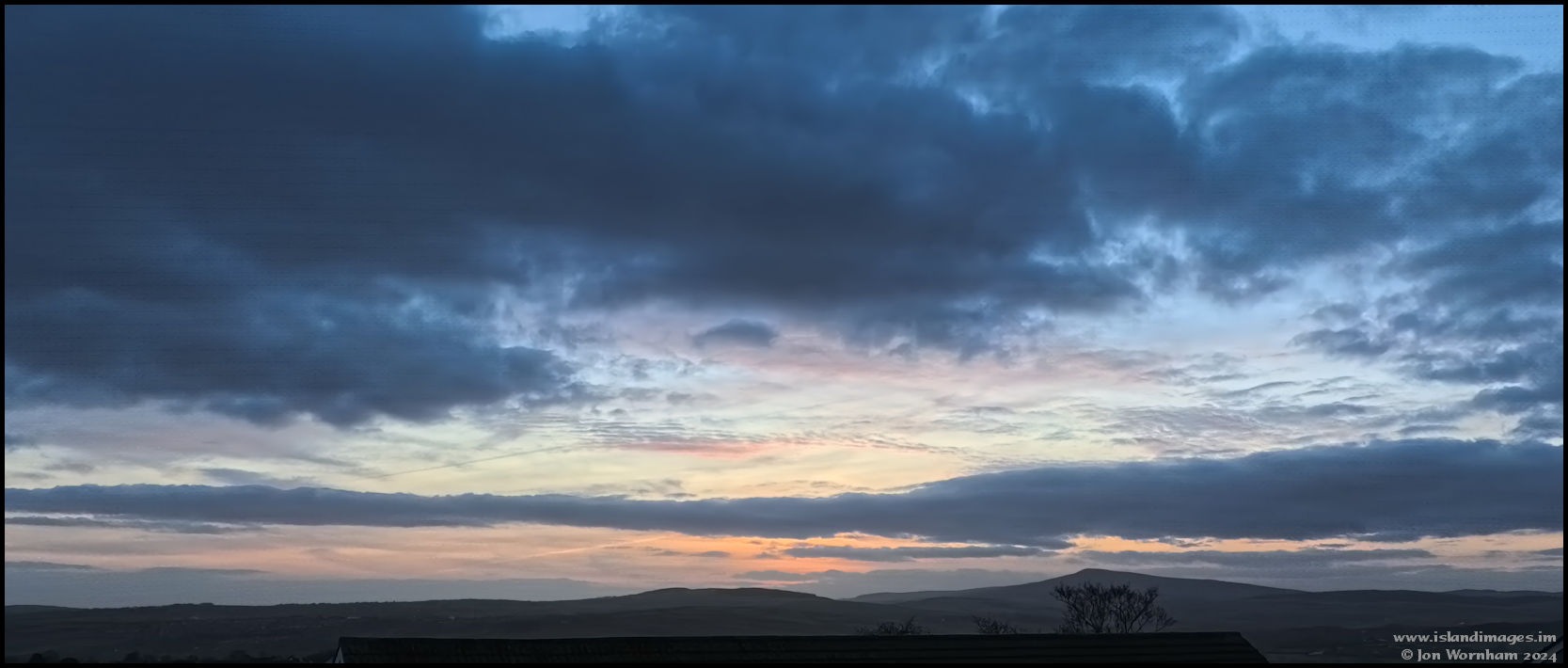Pastel colours in the sky looking south west towards South Barrule