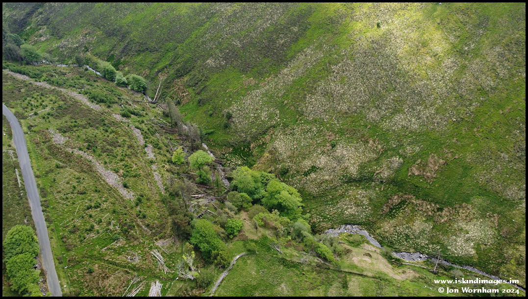 Looking down into the valley, where the Injebreck River winds through a mainly harvested area, although it looks like they didn't manage to retrieve all of the cut trees.