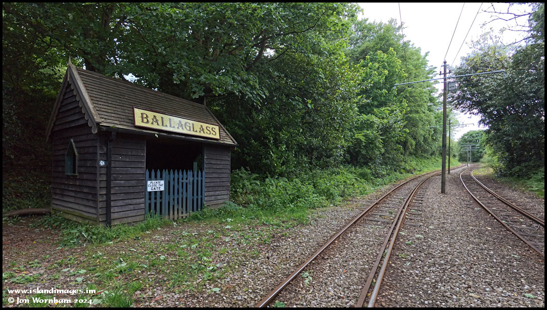 The glen is served by two stations on the Manx Electric Railway. This is Ballaglass and a bit further down the line is Cornaa.
