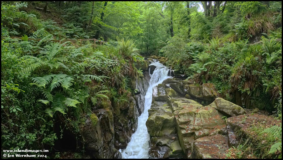 This is the view looking upstream from the bridge, with the river forced through a narrow gap in the rocks.