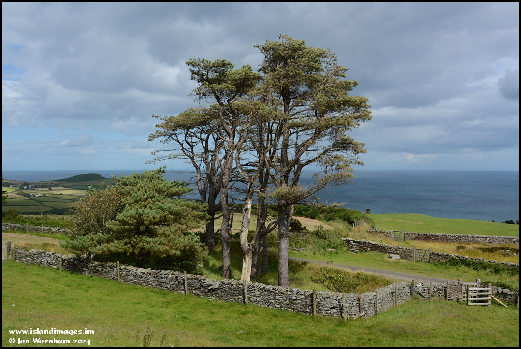 Lookng down to the burial sites from the adjacent hill, to which the landowner has kindly allowed public access. Maughold Head in the distance.