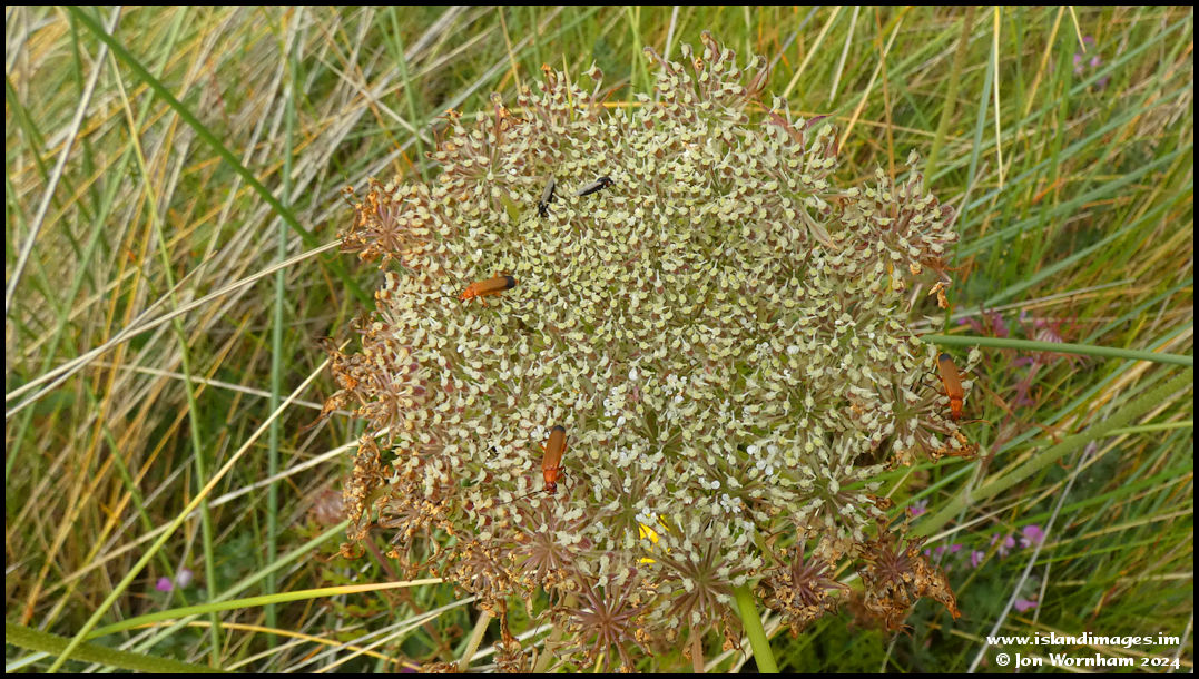 Different insects on this flower head, some sort of beetle I think.