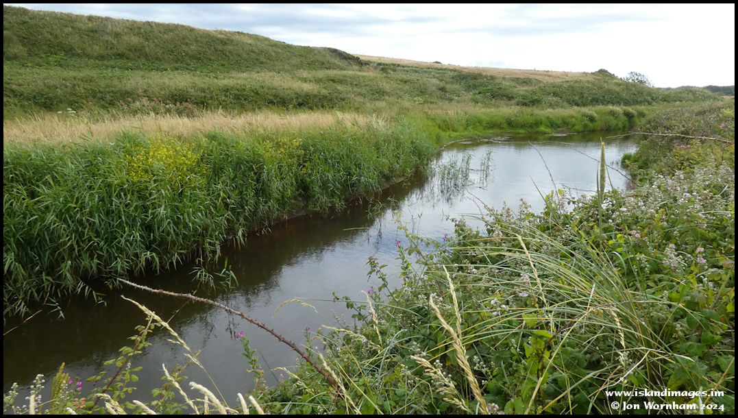 Loking upstream from the banks of the Lhen River, which runs in a shallow valley through the reserve.