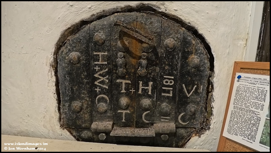 This fascinating relic is built into the western wall of the little anti-room (vestry?) at the back of the church. I'd love to know what it was used for and what the letters mean, but it seems to be dated 1817.