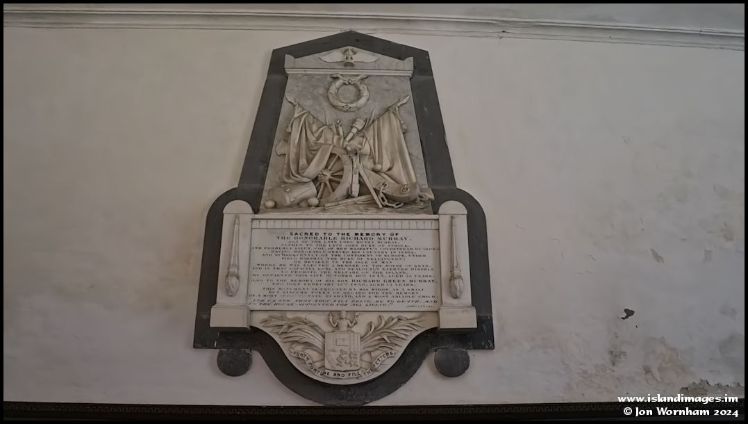 A rather ornate memorial to 'The Honorable Richard Murray' on the church wall. It has quite a lot of family history on it, including the fact that he served in the army under the Duke of Wellington. It dates to around 1845.