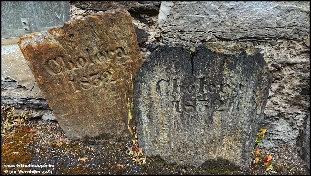 Memorials to cholera victims of the outbreak in 1832. These were possibly individual graves, but in Douglas, there is a mass burial grave containing the remains of 120 victims.