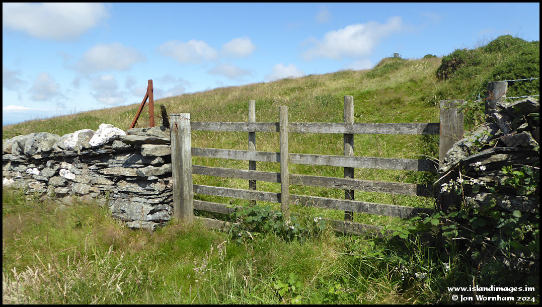 This gap in the stone wall is where one of the tracks to the Glion Kiark slate quarry started, so I'm going to climb over the gate and follow the old road. The area here is designated as 'Public land open for ramblage'