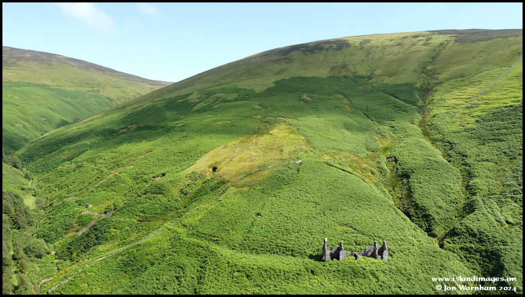 Moving the angle around and looking up the slopes of Sartfell. The quarries were along the side of the valley to the left, but are quite hard to make out in this season.