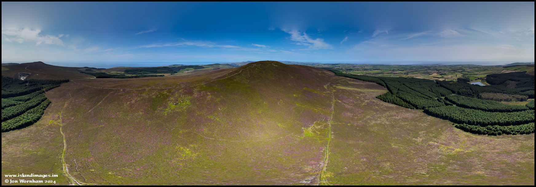 Having ascertained that the winds aloft weren't significantly stronger, I flew a little further away and up to a higher altitude for this panorama looking past the summit.