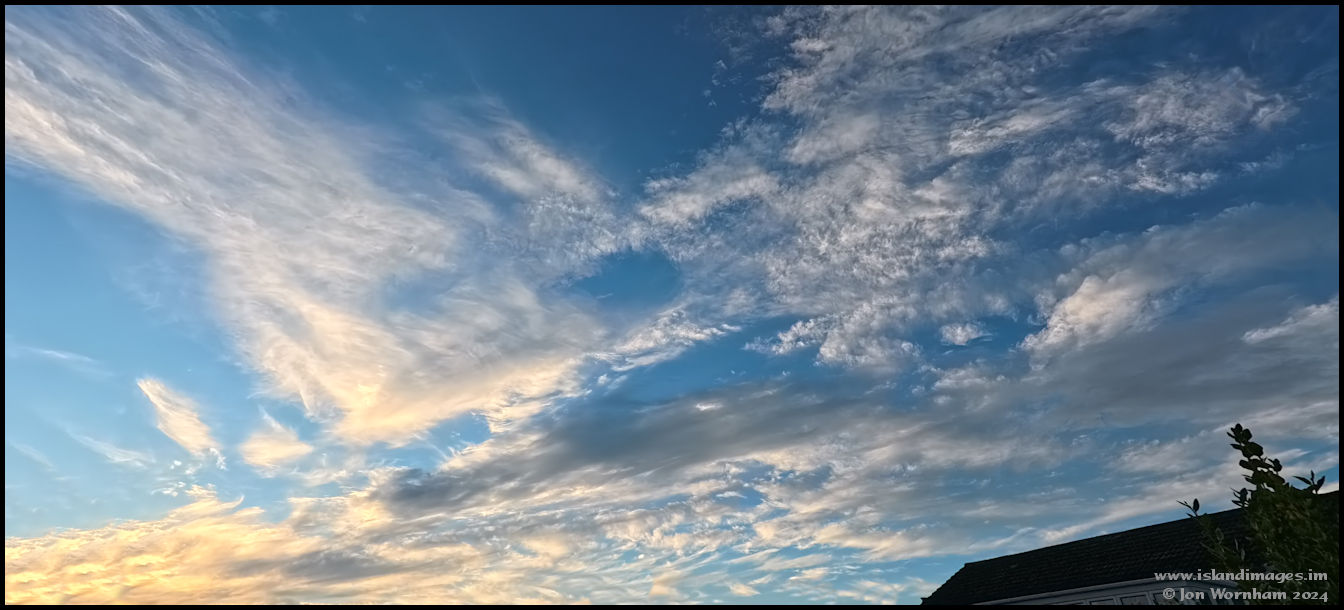 Looking in a more northerly direction from the back garden, with the setting sun illuminating the clouds.