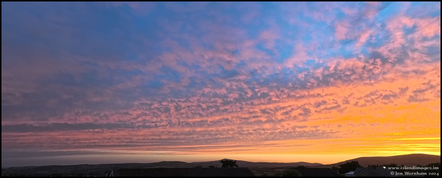 Still 20:59 but I'm now looking south west, where the orange colours of the sunset blend into blues and greys. South Barrule centre of picture.