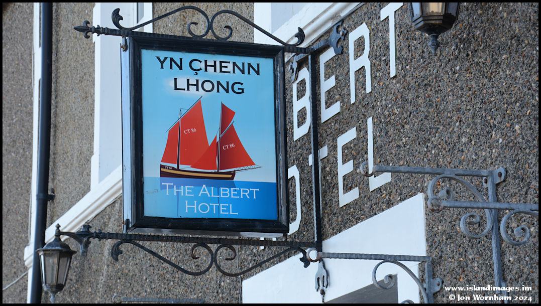 Pub sign at 'The Albert' featuring a Castletown registered traditional Manx fishing vessel from the days of sail. There's a photograph of this vessel in the iMuseum, you can