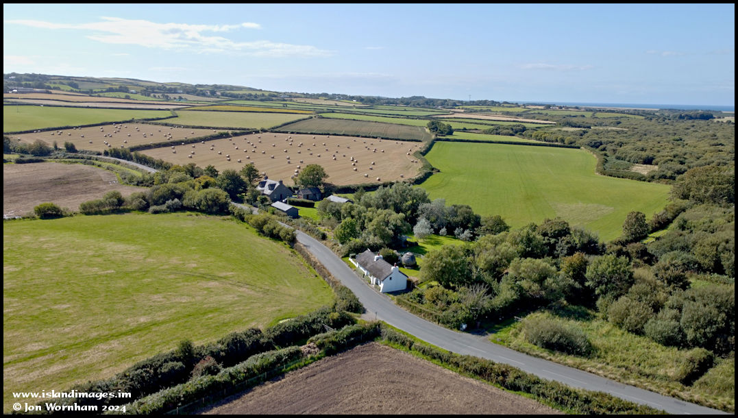 My first flying location was Cranstal, on the road from Bride to the Point of Ayre. Centre of the picture is a lovely traditional thatched Manx cottage, the wooded area to the right is Lough Cranstal.