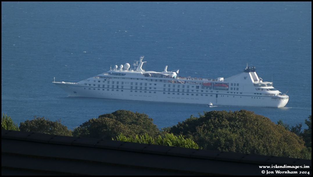 'Star legend' leaving Douglas. Of interest is the pilot boat 'Girl Mary' just heading away from her having taken off the port pilot, who has had to climb down that little ladder from the ship.