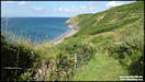 a steep decent down the cliff, which at this time are covered with a luxuriant