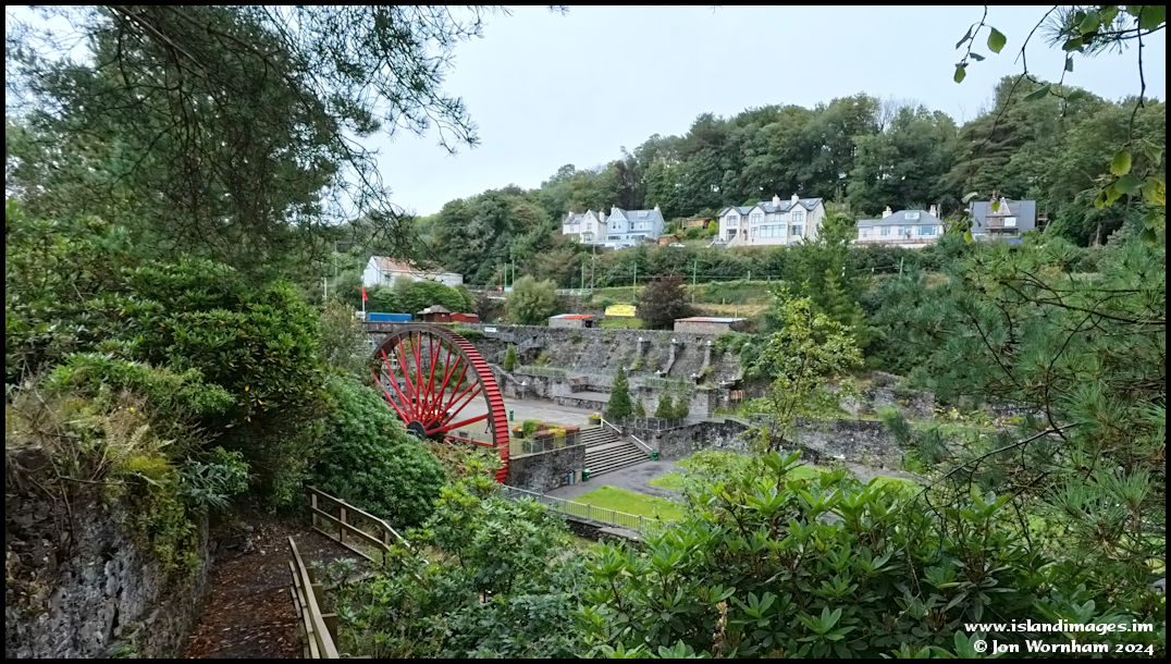 Looking down from 'The Captain's Path' to the other big waterwheel in Laxey, the 'Lady Evelyn' which was originally at the Snaefell Mine, high up in Laxey Glen.