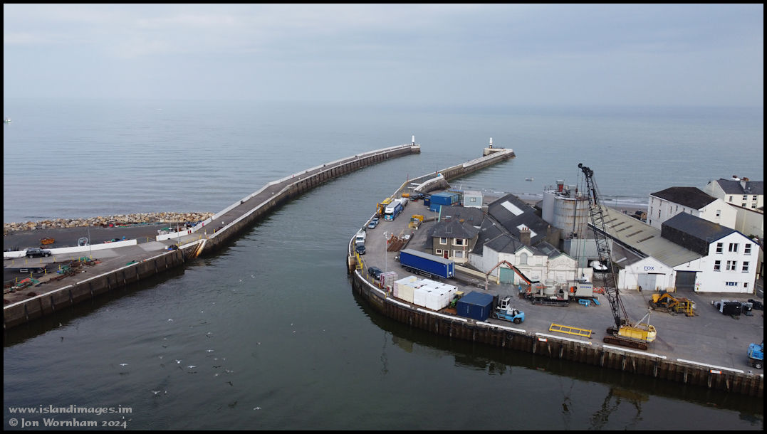 A final conventional shot from a lower level as a flock of gulls head away from the harbour.