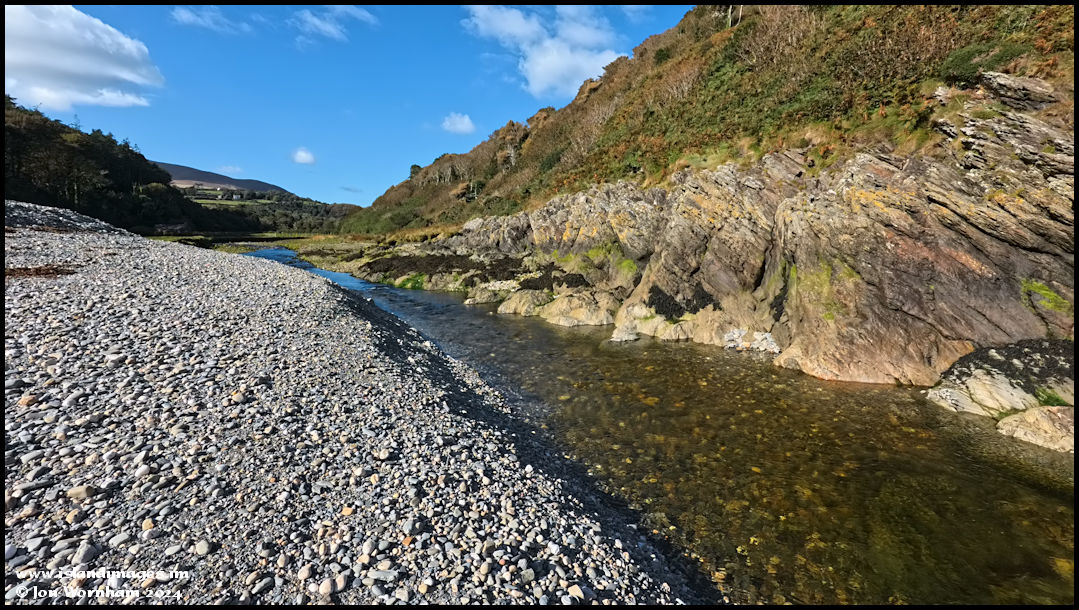 Turning the camera around and looking inland towards the lagoon, which empties at low tide with just the river flowing through it.