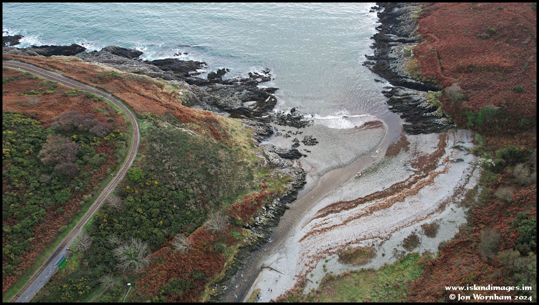Looking down to the beach from over the glen, with the Groudle Glen Railway line curving around on its journey 'up to the sea'.
