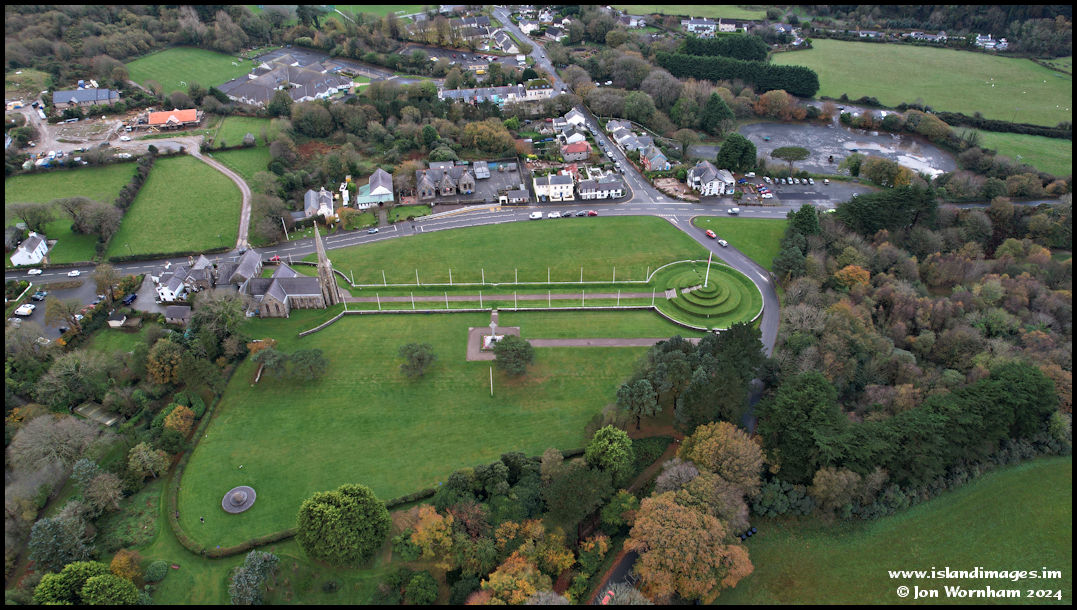 A side on view of Tynwald Field. Although very quiet today, on Tynwald Day, 5th July, the whole area is busy with people and the closer area is home to the Tynwayd Fair.