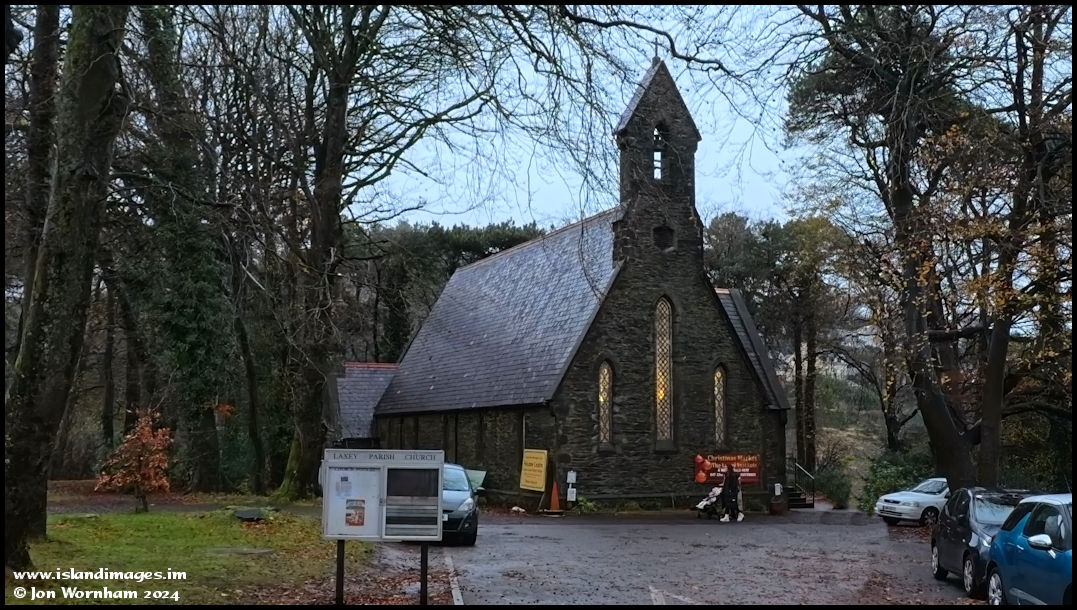 Laxey Parish Church, constructed in 1854 for the miners of the Great Laxey Mine. Now situated within the area of the Manx Elecric Railway station, although the railway didn't arrive here until fourty years after the church's construction.