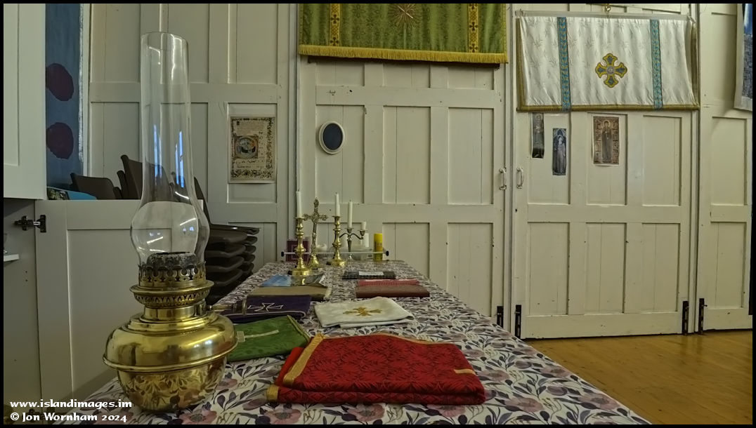 Sue very kindly brought out one of the oil lamps for a closer look. If anybody viewing this has any spare glass shrouds that they don't want, Sue would love to hear from you! The remaining wooden folding partition can be seen behind.