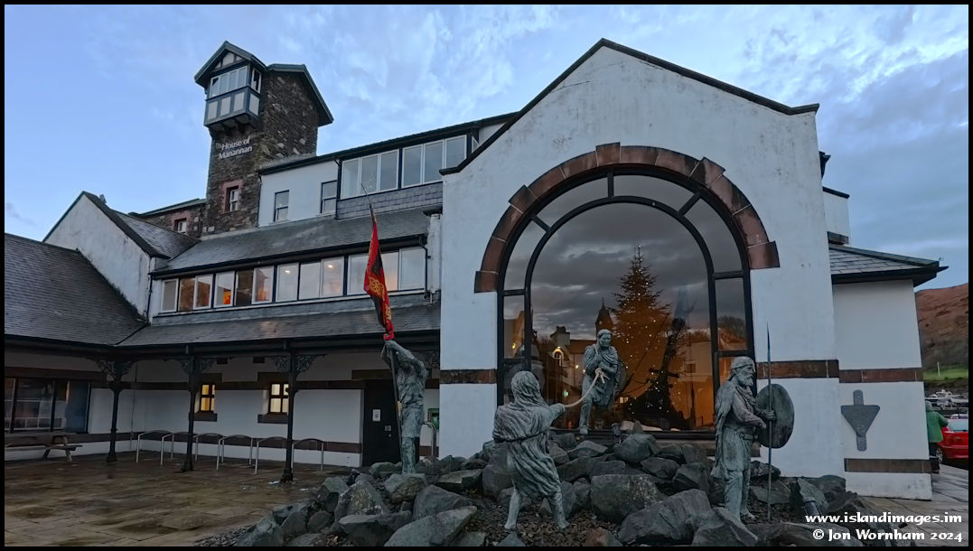At the front of the House of Manannan, where a group of Norsemen can be seen pulling thier longship up on to a beach. The (replica) longship can just be seen inside the museum.