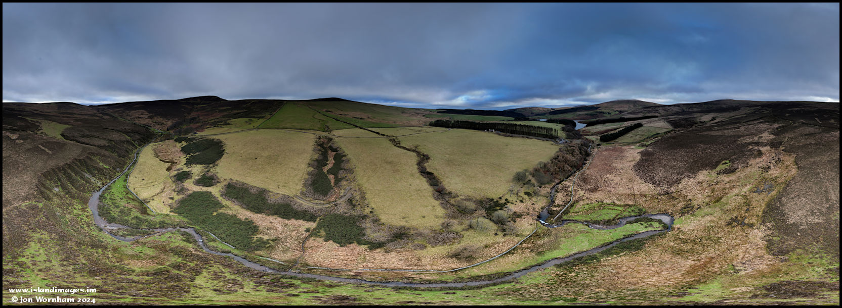 Climbing higher and flying a little way down the valley towards Sulby Reservoir for this 360 degree panorama.