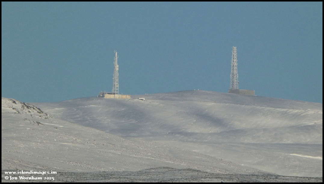 Using maximum zoom on the FZ82 for this picture of the radio masts on Snaefell summit. The masts get covered in ice, but with the Mountain Road closed due to snow there was no way to get close to them.