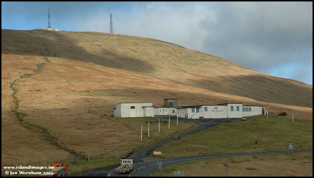 Snaefell and the buildings of the former Cold War 'Rotor' radar station, 8th February 2006. I think the Motor Museum had moved out by then, these days it's the very successful Victory Cafe.
