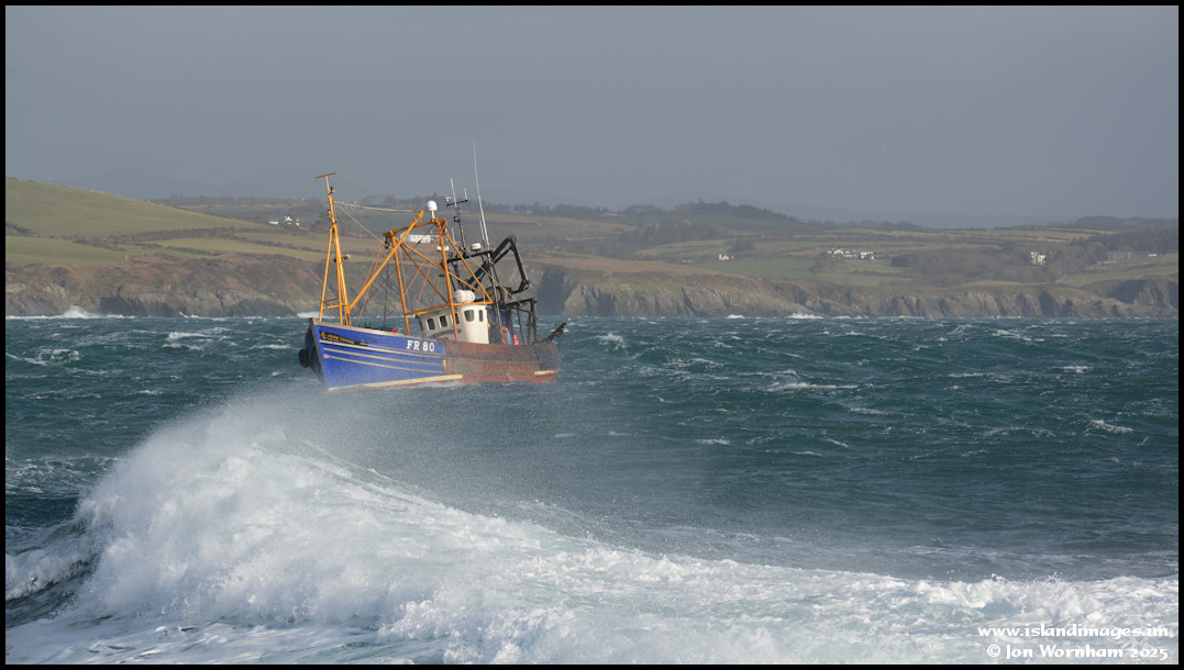 Another stormy day, on the 7th February 2016 and I was on Fort Island to get this picture of a Scottish fishing vessel heading into Derbyhaven Bay to get a bit of shelter from the rough seas.