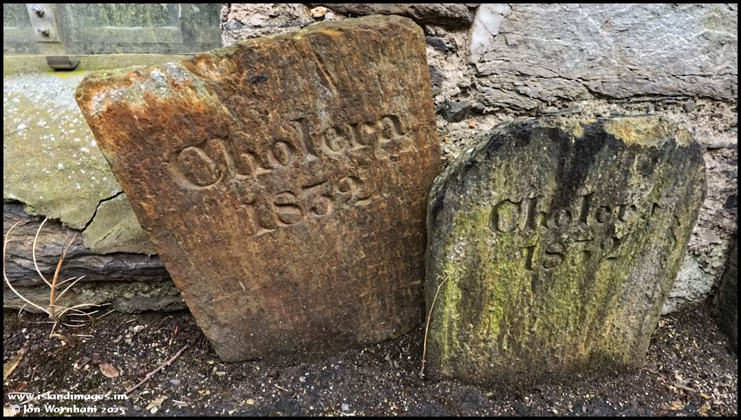 A poignant reminder of unchecked pandemics, I'm guessing that these stones leaning against the church wall were originally markers for mass graves.