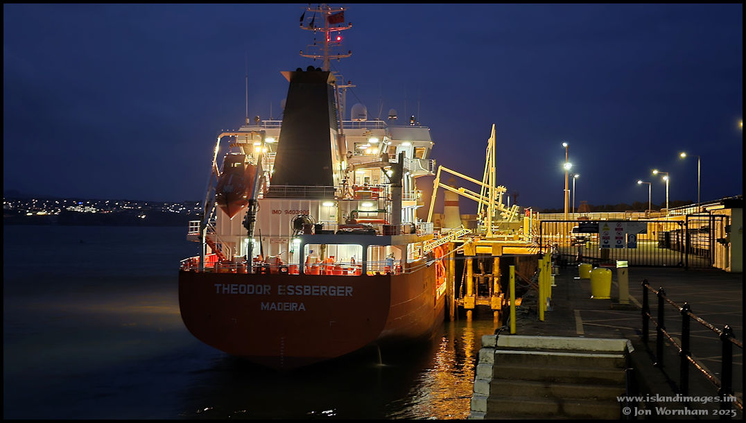 Tanker 'Theodor Essberger' discharging petroleums at the Battery Pier. She would complete and sail again in a few hours.