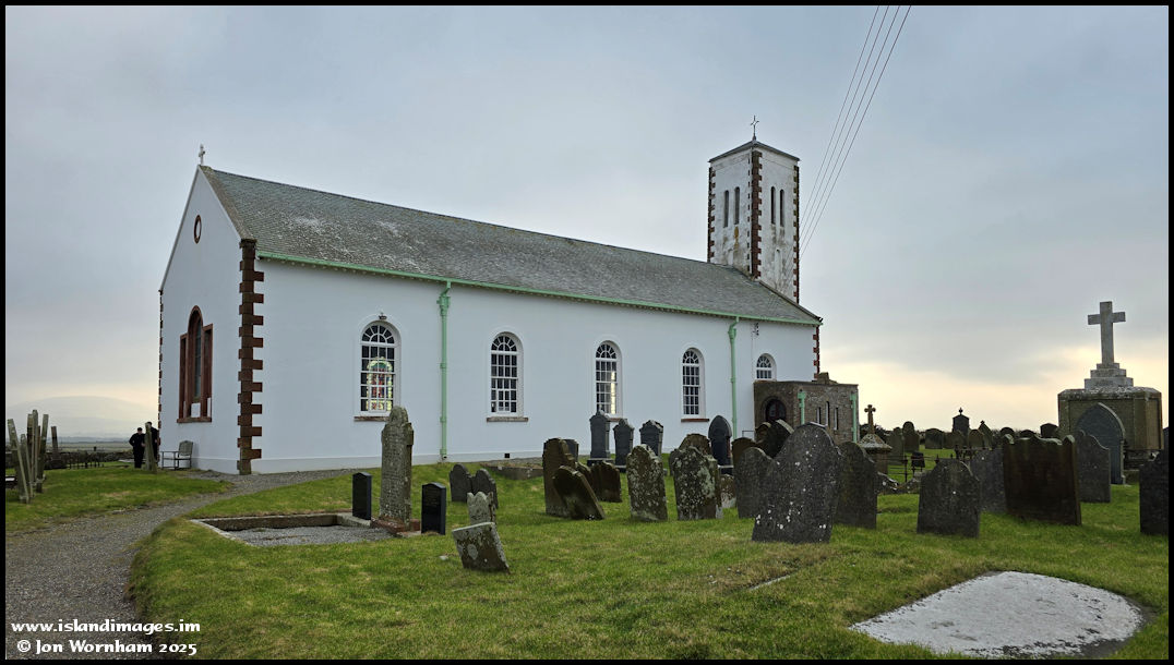 Jurby Church from inside the gate.  The church was under threat some years back, and still needs a lot of work, but a team of volunteers keep it going and organise fund raising events.