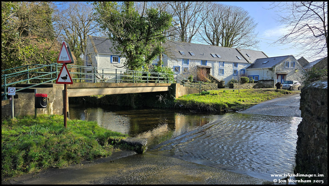 The Silverburn ford in Ballasalla. I do love the 'Caution, Ducks' sign!