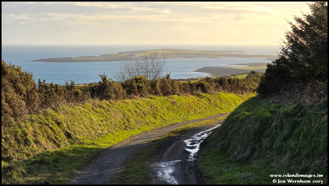 When the hedges on the lane drop low enough, there are great views down to Langness.