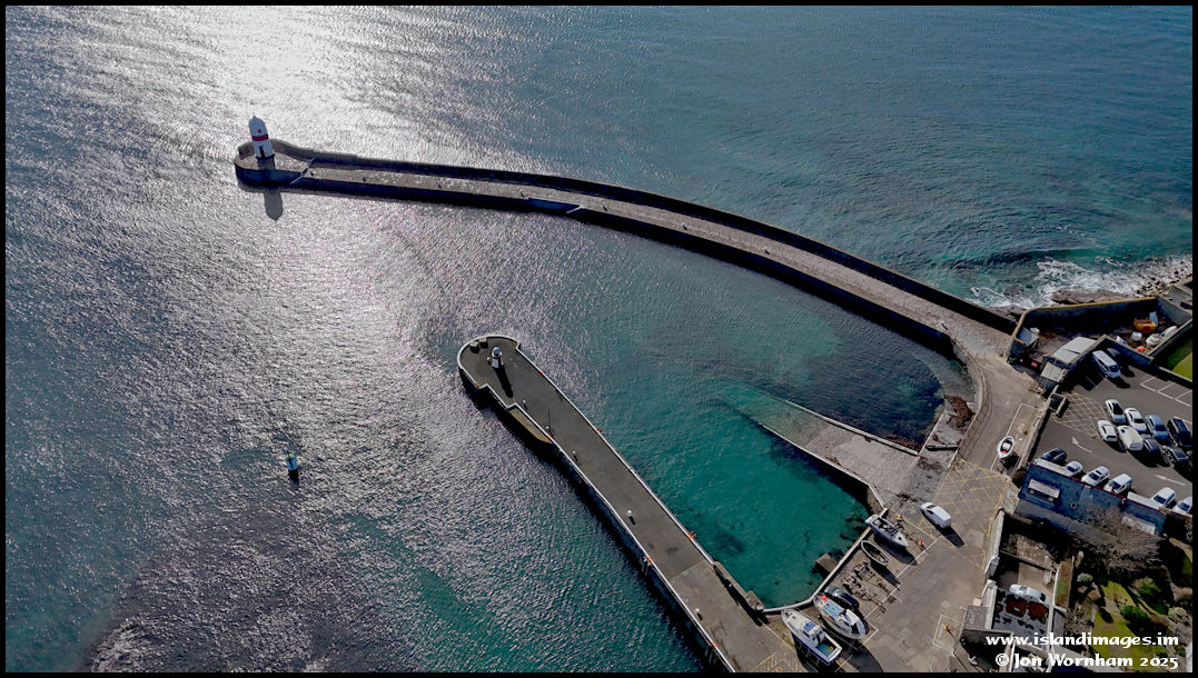 Castletown outer harbour. Nice and calm today, but in bad weather huge waves crash right over the breakwater and lighthouse.