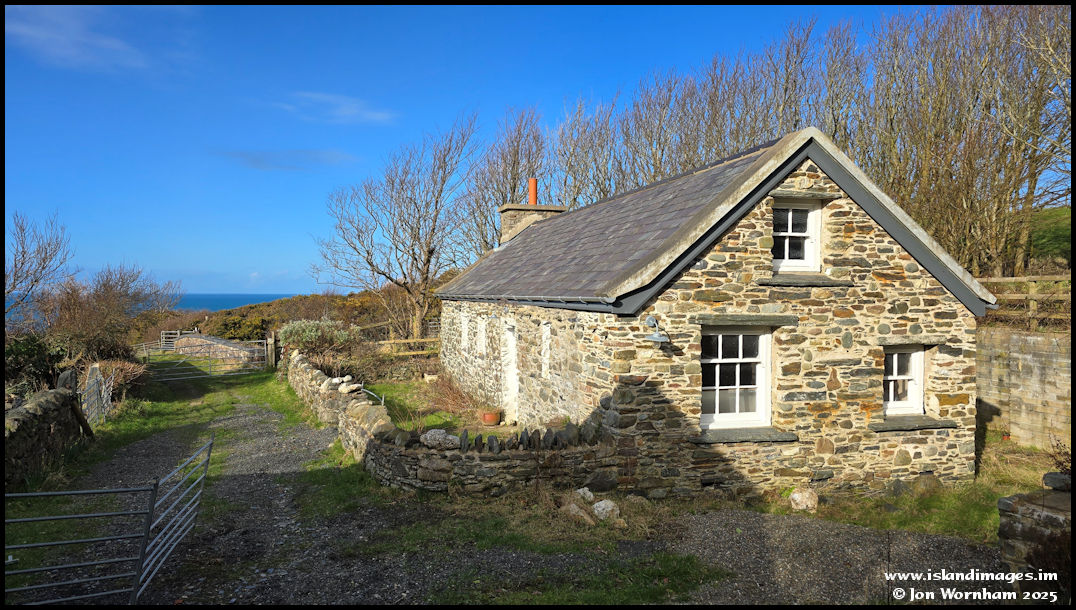 A lovely little cottage that used to be a holiday rental, but doesn't seem to be now. The bridge over the former Manx Northern Railway is just beyond the next gate.