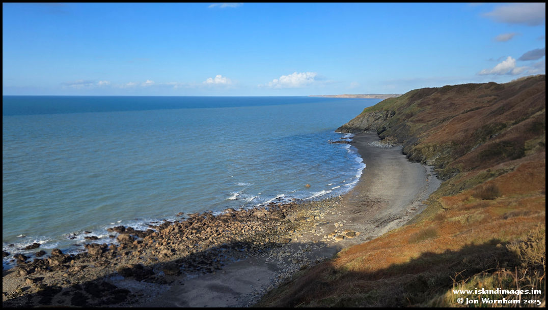 There's a great viewpoint just before the path heads downwards, with views along to Gob y Deigan and then in the distance to Jurby Head.